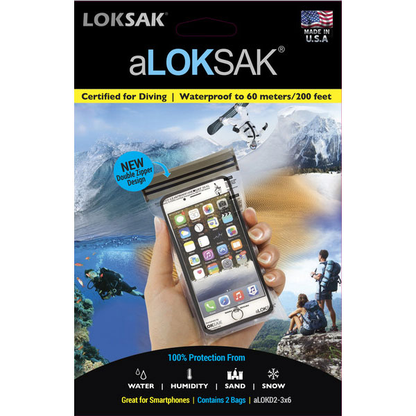 ロックサック 防水ケース LKSKALOKD2-3X6 aLOKSAK防水マルチケース スマートフォンスモール(2枚セット)縦86 ×横162 防水ケース 防臭ケース スマホ 携帯電話 【ゆうパケットOK】