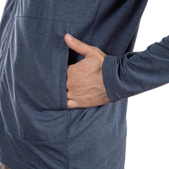 防虫、吸汗速乾、UVカット機能を持つトランスウェット・スコーロン素材のフルジップパーカー。盛夏での使用も考慮した薄手でありながら目の細かい生地感で、防虫性やUVカット性能に優れており、様々なアウトドア・アクティビティで快適に着用できます。