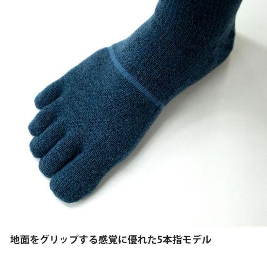 オールシーズンの登山に適した厚手モデルの5本指ソックス。