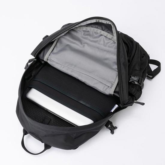 Function:フレックスベントのショルダーハーネス/背面をサポートするパッドつきのエアメッシュとPEシート/背骨への負担を減らすスパインチャンネル/取り外し式のウエストベルト/バックセイバーボトム/本体内部にネオプレーンのPC/ハイドレーションスリーブ/オーガナイザーつきのフロントポケット/サイドにメッシュのボトルポケット/リフレクターライトループ/デイジーチェーン