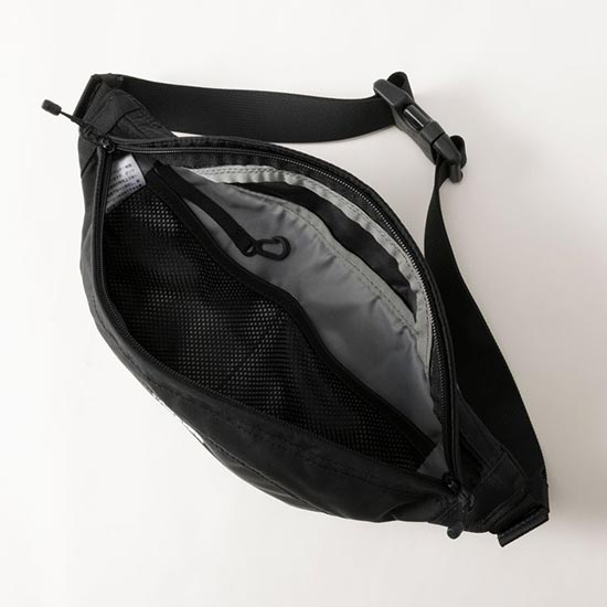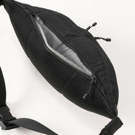 財布や携帯電話など、日常の身の回りの小物の収納に便利な1リッター容量のスリムなウエストバッグです。身体にフィットするシンプルなデザインに仕上げ、ウォーキングやちょっとしたランニング時も活用できます。内部には、小物の仕分けに便利なメッシュディバイダーとキークリップを装備。背面にファスナーポケットを設けています。メイン生地と補強生地の両方にリサイクル素材を採用し、環境保護へも配慮しています。