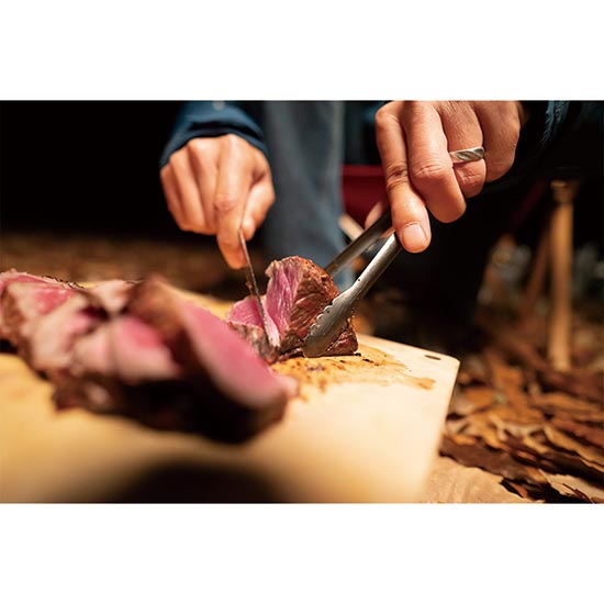 Tボーンステーキのような肉塊でもガッチリ掴めます。