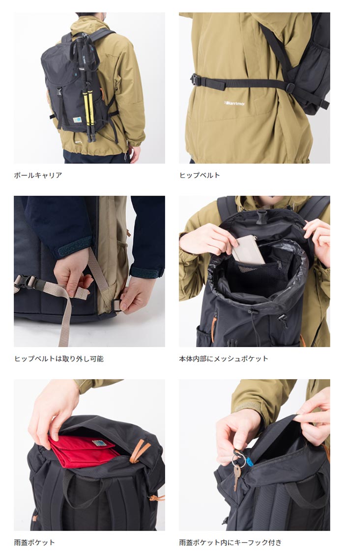 豊富なポケットを備えた、シンプルでクラシックなルックスでありながら使いやすい機能を盛り込んだモデル。機能性を高めるだけでなく、アウトドアテイスト溢れるデザインのアクセントにもなる、カラビナなどをかけることのできるデイジーチェーンをフロント部分に装備。