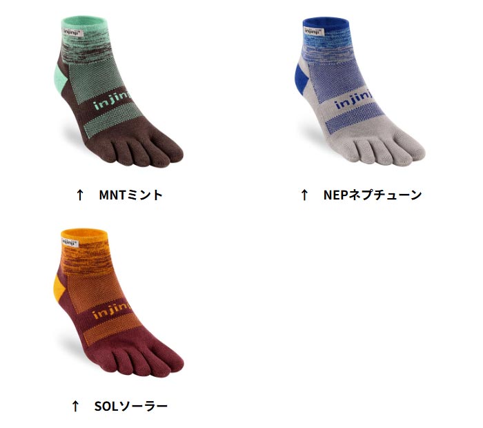 インジンジ 靴下 IJJ213130 トレイルミッドウェイトミニクルー メンズ/男性用 レディース/女性用 スポーツソックス トレイルランニング 5本指ソックス