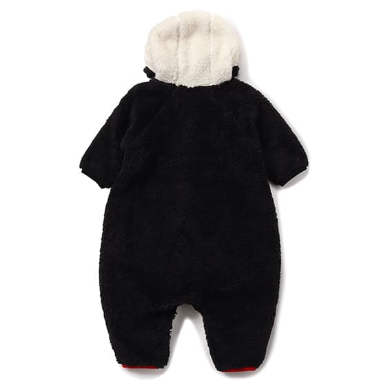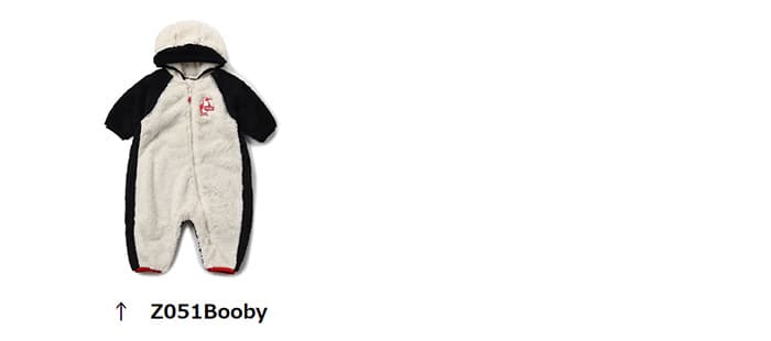 あたたかく、見た目も可愛いエルモフリースのベビー用カバーオール(おくるみ)。1歳頃まで着られる70・80cmサイズ。長めに配したファスナーで前面が大きく開くので、脱ぎ着がしやすく、首がすわる前の赤ちゃんも着用可能。左胸にはブービーロゴ刺繍、足先には赤足カツオドリをイメージさせる赤のパイピングを配し、あそびゴコロのあるデザインがポイント。