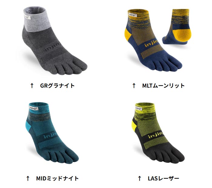 インジンジ 靴下 IJJ213130 トレイルミッドウェイトミニクルー メンズ/男性用 レディース/女性用 スポーツソックス トレイルランニング 5本指ソックス