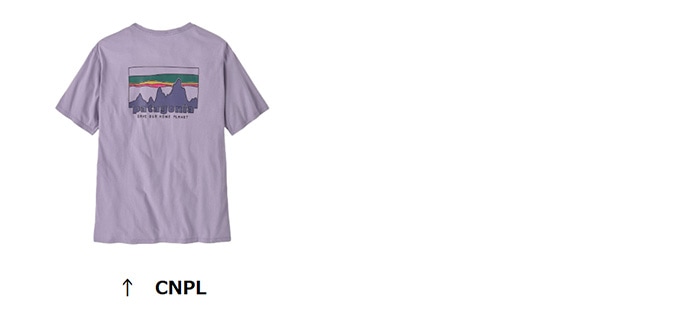 パタゴニア初期の製品ラベルからヒントを得たグラフィックを採用。時は流れて今、私たちは地球を救うためのビジネスを実践。そのカギとなる資源の節約を目指し、日々の着用に最適な厚さのこのTシャツはオーガニックコットンを使用し、一般的なコットン製Tシャツに比べ水の使用量を84%、二酸化炭素排出量を16%削減。