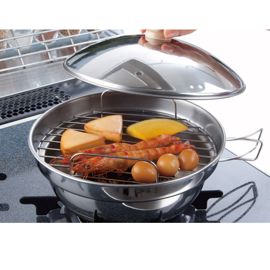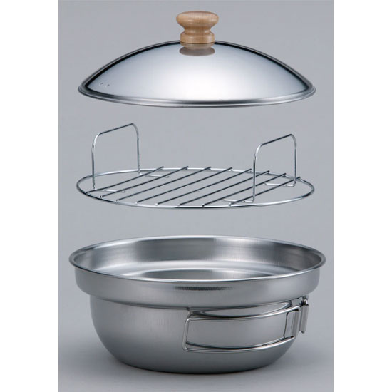 材質:鍋・フタ・ハンドル:ステンレス、燻煙網:鉄(クロームメッキ)、ツマミ:天然木