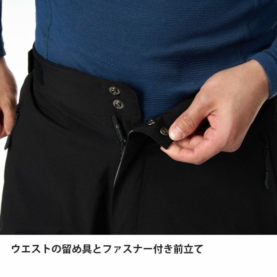 防水透湿性とストレッチ性を両立させた「エバーブレス」生地を採用。生地に備わる高いストレッチ性はラッセルなど雪山での大きな動きにも追従し、レイヤリングによる着膨れや動きにくさを軽減します。